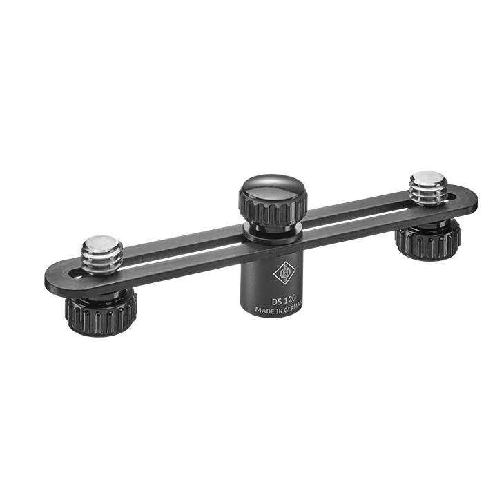 Dual stand mount with 2 x 1/2″ threaded bolts, 3/8″/5/8″/1/2″ tripod thread, black