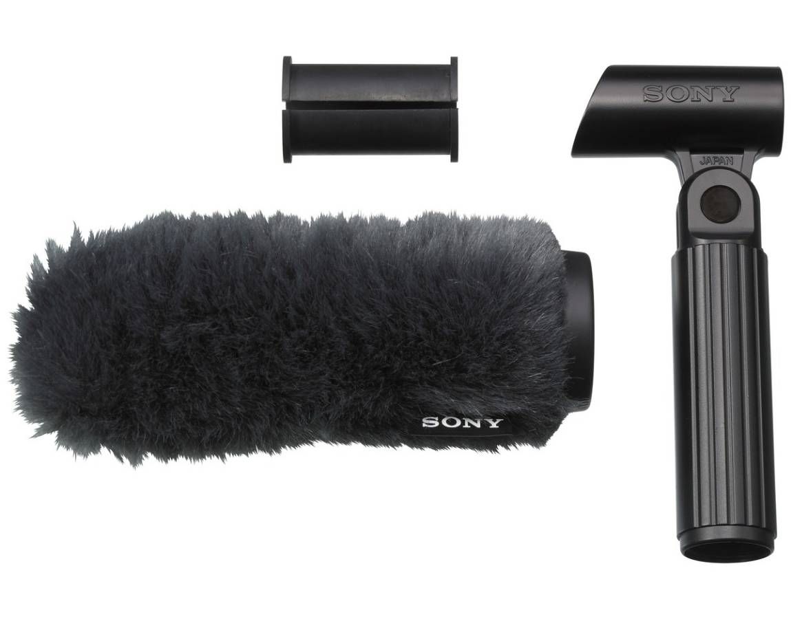 The ECM-VG1 is supplied with an innovative windscreen that has an internal frame to rigidly fix the windscreen, creating a space between the microphone and the outside part of the windscreen that helps suppress strong wind noise. It also protects the ECM-VG1 from contact noise in harsh operational environments such as outdoor shooting.
