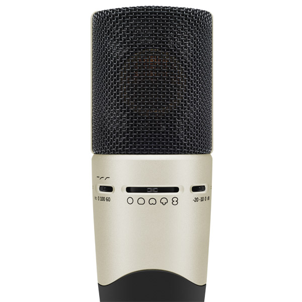 Large-diaphragm microphone, true condenser, 5-fold switchable directional pattern, silver, including stand mount and case