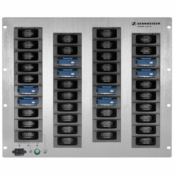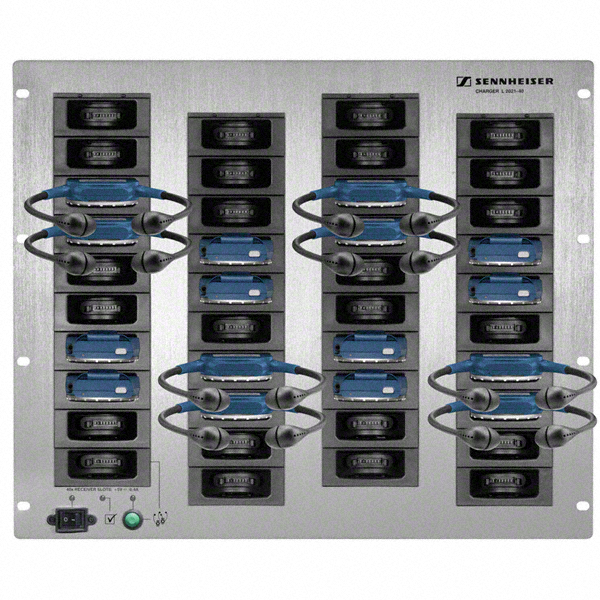 Charger for 40 receivers, TourGuide digital, standing unit or 19” built-in, RJ 45, PC software, 110-240 VAC