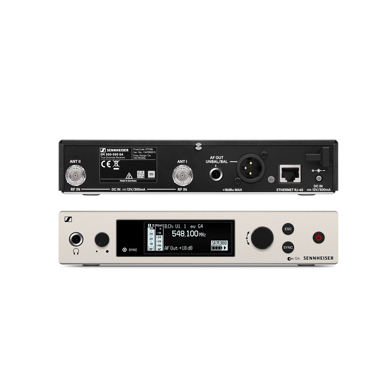 SennheiserWireless vocal set. Includes (1) SKM 300 G4-S handheld with mute switch, (1) e 865 capsule (supercardioid, condenser), (1) EM 300-500 G4 rackmount receiver, (1) GA 3 rack kit and (1) mic kit, frequency range:DW (790 – 865 MHz)