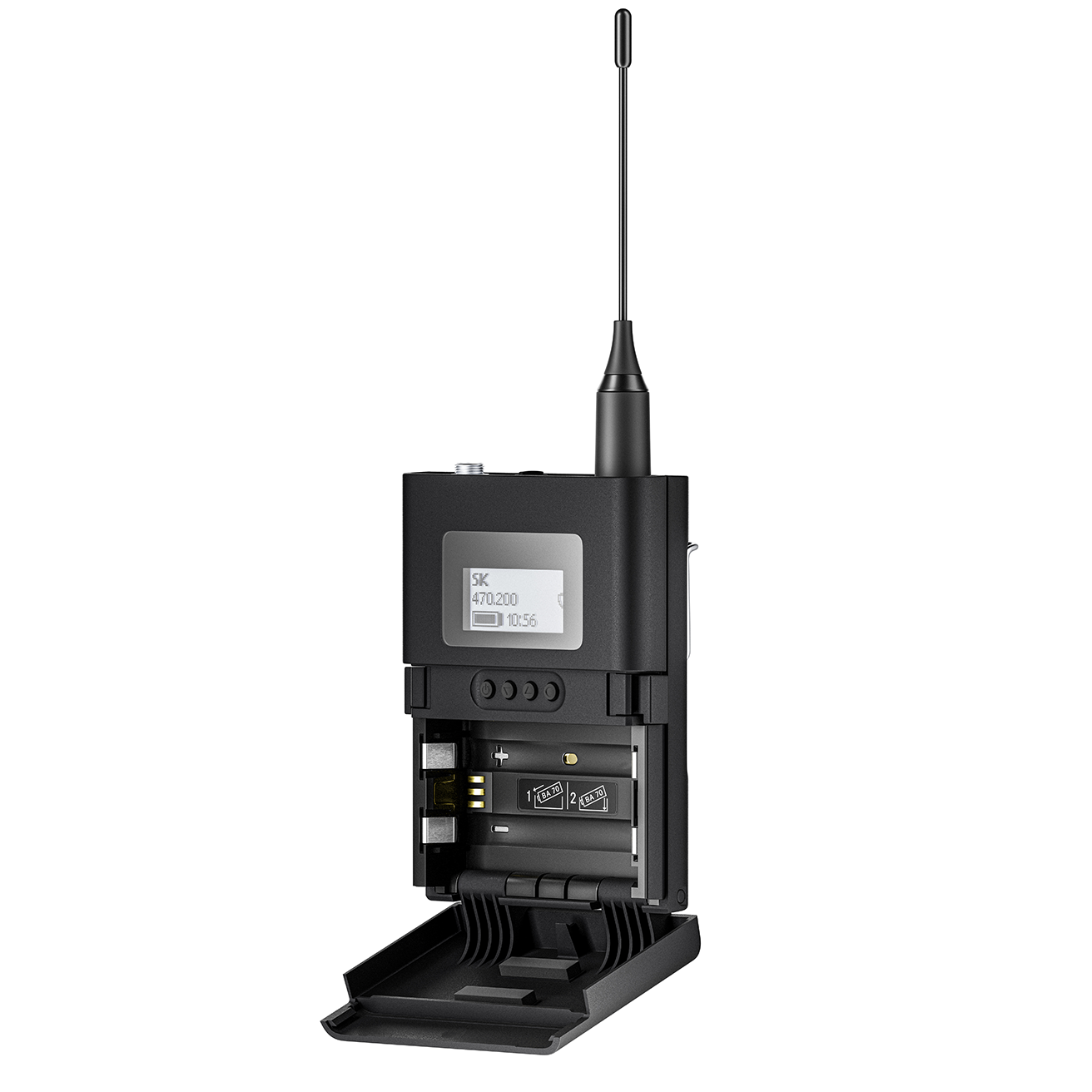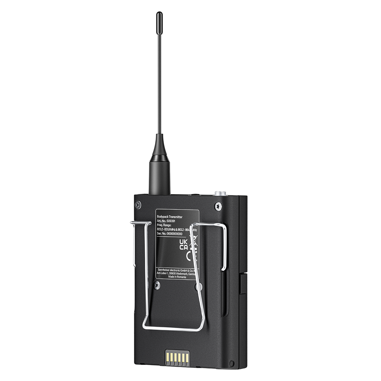 Bodypack transmitter with 3-pin connector. Includes (1) EW-DX SK 3-PIN and (2) AA batteries, frequency range: U1/5 (823.2 – 831.8 MHz & 863.2 – 864.8 MHz)