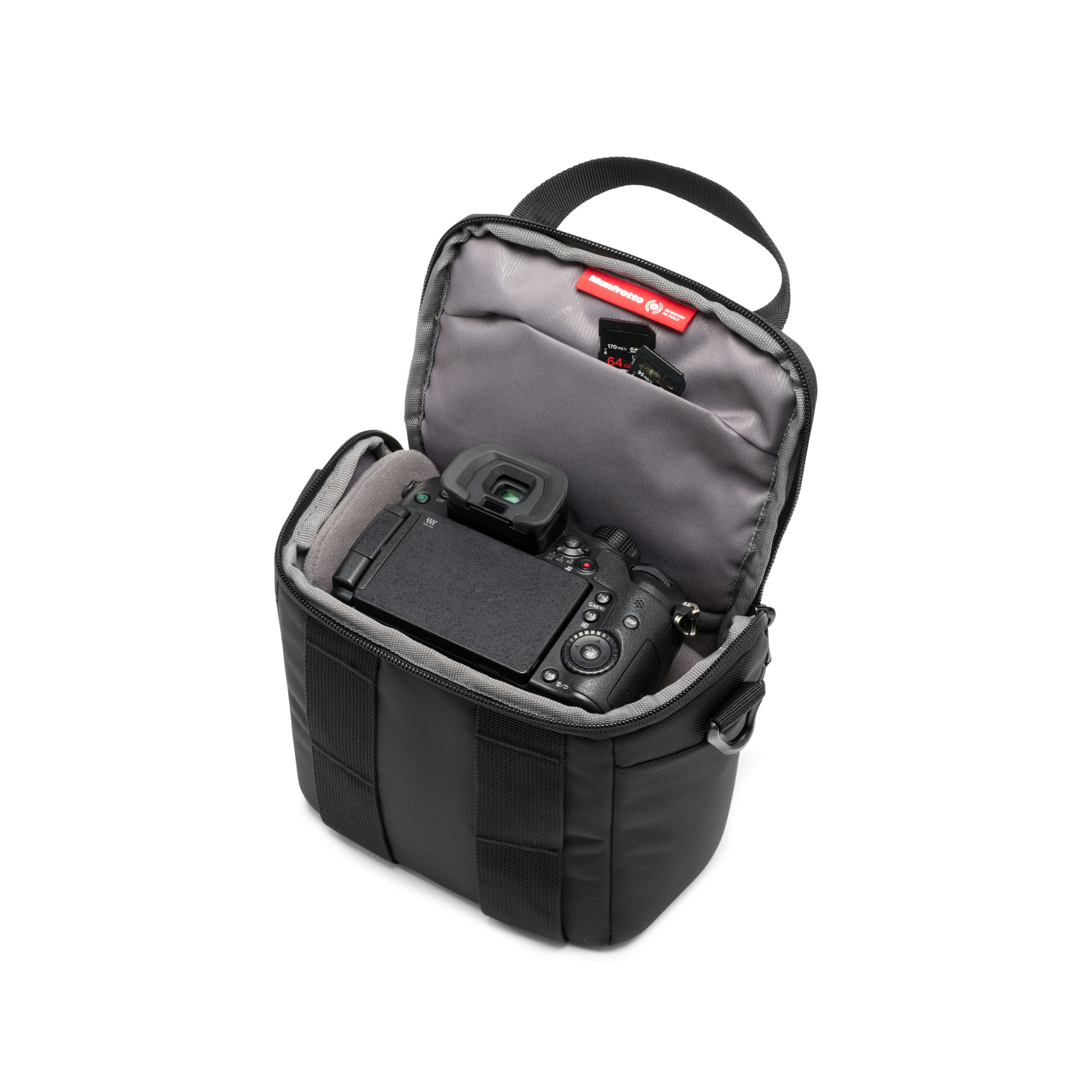 Holds compact system cameras with 1 extra lens