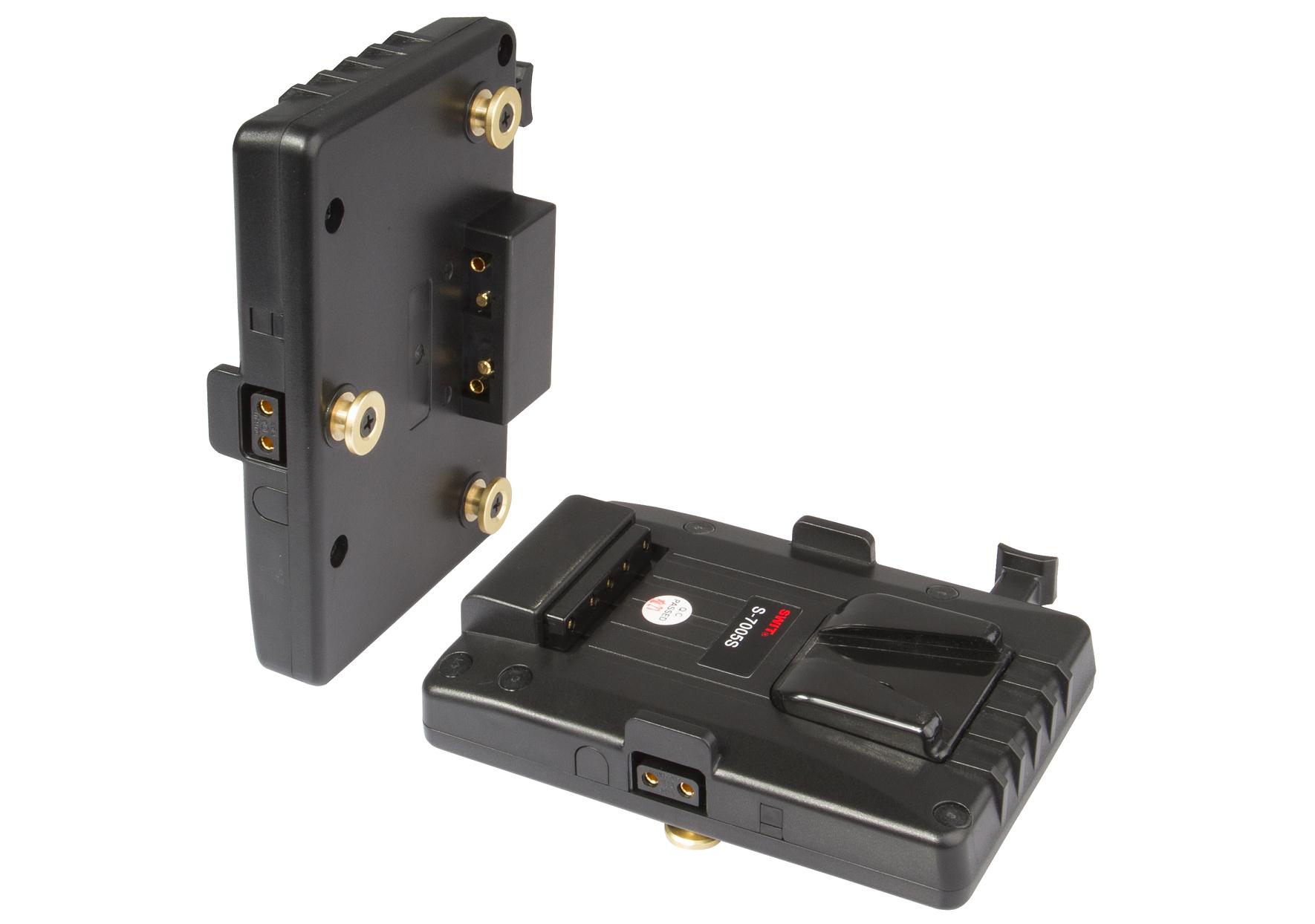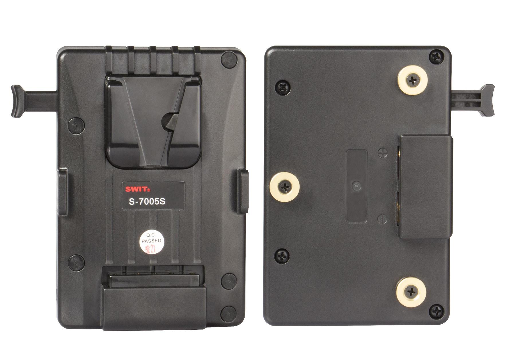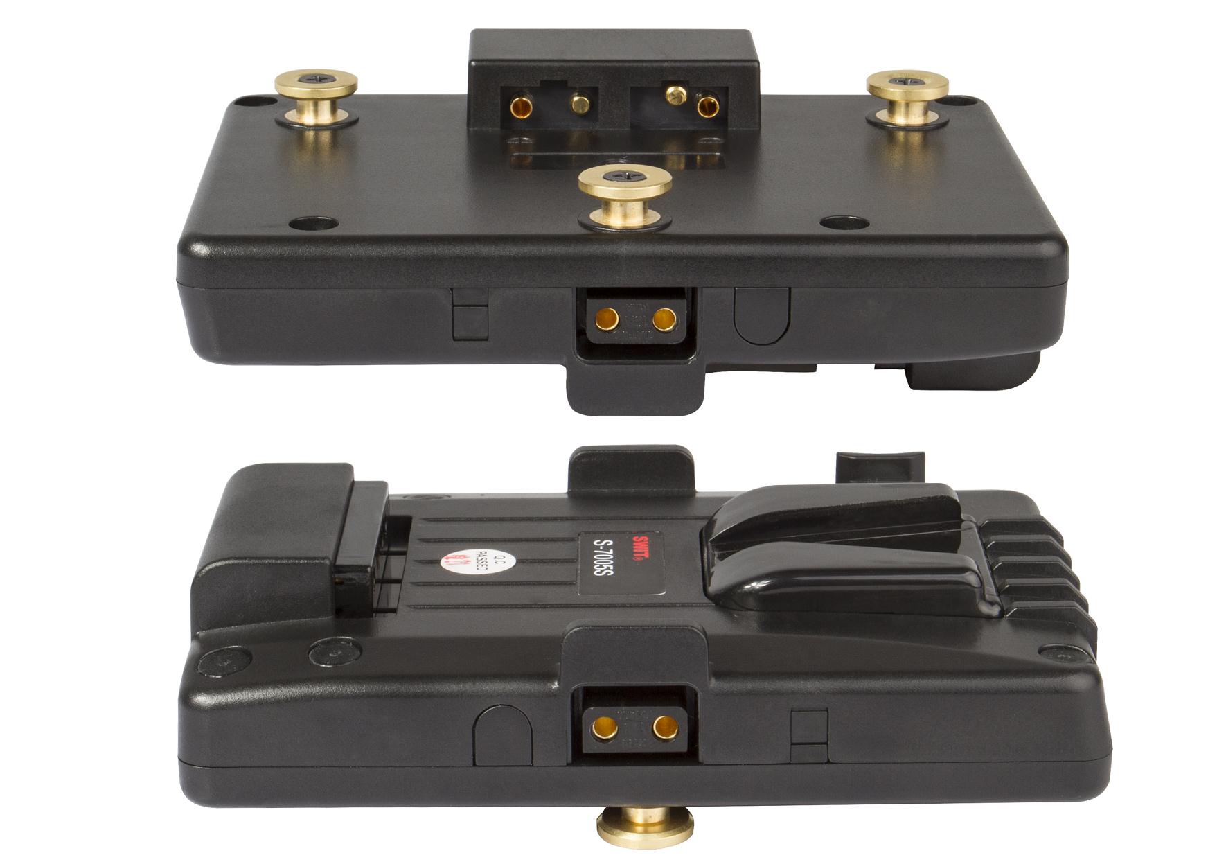 S-7005S is used to adapt V-mount batteries to Panasonic AntonBauer gold mount cameras. The front side is V-mount plate, to attach SONY V-mount batteries, and the rear side is AntonBauer gold mount connection for the Panasonic gold mount cameras.