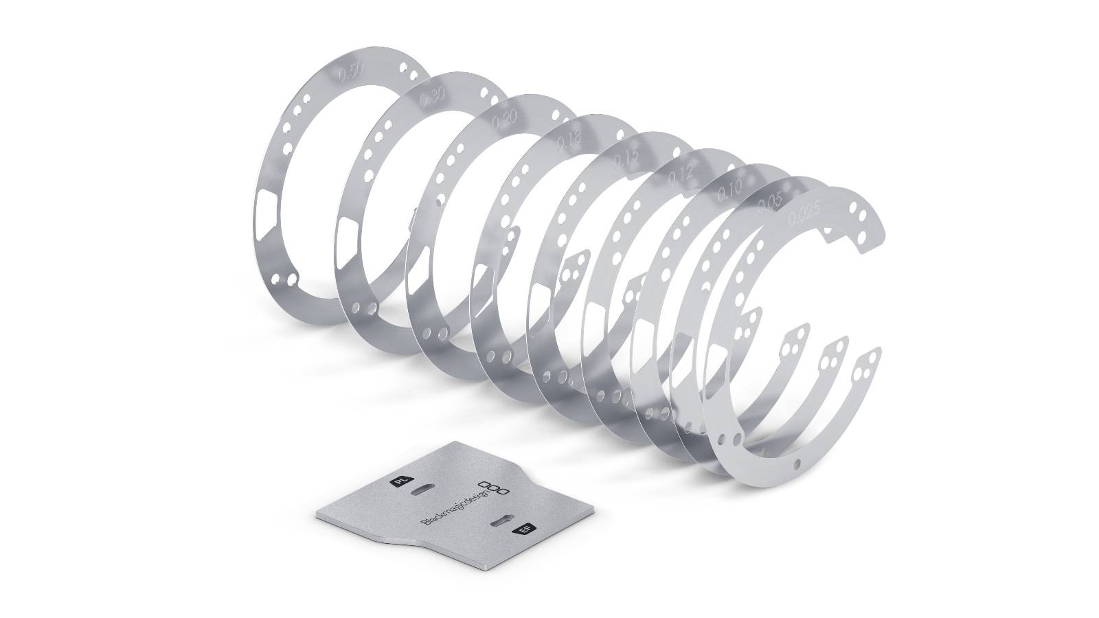 Set of 9 shims and baffle tool for making precise changes to the flange focal distance for URSA Mini Pro’s EF, PL or B4 mount.