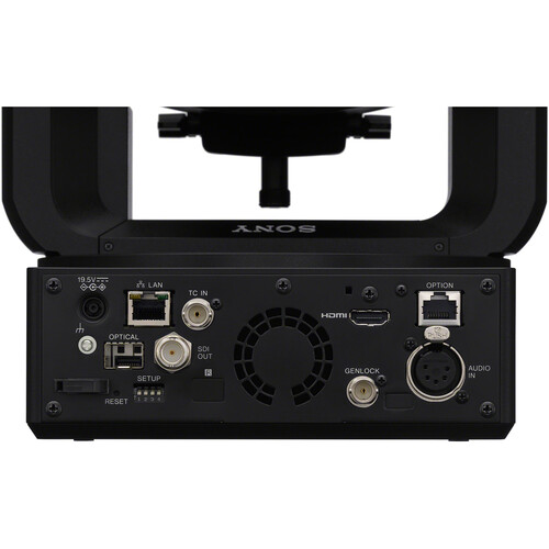 • A robust interface includes a LAN port for network and PoE++ use, timecode input, a genlock connector, and red/green tally indicators
