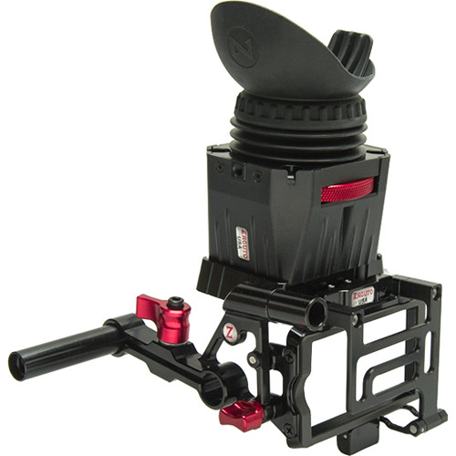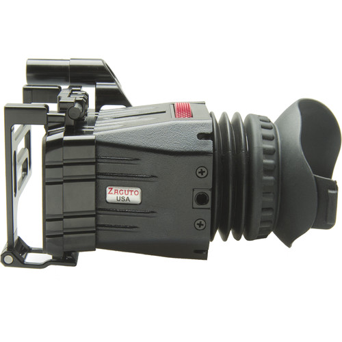 The Zacuto EVA1 Z-Finder is specifically made for use with the Panasonic EVA1 camera. The flip-up Z-Finder loupe securely mounts on your camera’s LCD screen and prevents ambient light from interfering with your view of the monitor. It forms a sturdy connection to the LCD, which gives you an additional point of stability when hand-holding the camera. The Z-Finder’s design permits quickly flipping the finder up and out of the way, so the LCD can be used as a monitor, without removing the finder from the camera.