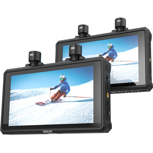 Transmit, receive, and monitor high-quality wireless video transmissions using this Mars M1 5.5″ Wireless Transceiver Monitor Kit from Hollyland. This kit includes two Mars M1 5.5″ monitors that can be used as either a transmitter or a receiver. Each Mars M1 features a 5.5″ touchscreen display that provides a sharp resolution and 1000 cd/m² brightness for follow focus and director’s monitoring applications. The built-in wireless transmitter and receiver allow you to send and receive video between M1 units as well as to/from the Mars 400S Pro, Mars 300 Pro, and Mars 4K wireless transmitters/receivers at a distance of up to 450′. You can also monitor video from the M1 on smartphones and tablets running the companion Hollyview app.