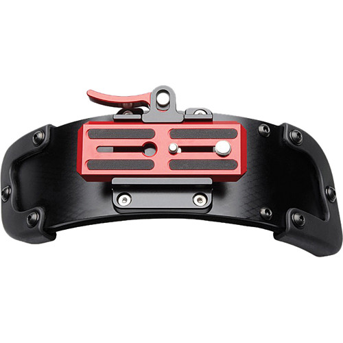 The included QR plate attaches to a camera or baseplate, and you slide the plate into the QR clamp on the shoulder pad. This allows you to easily adjust the camera’s position on the shoulder pad for balance and comfort. The QR system also allows you to quickly remove the shoulder pad and mount the camera to a tripod with a compatible QR mechanism.
