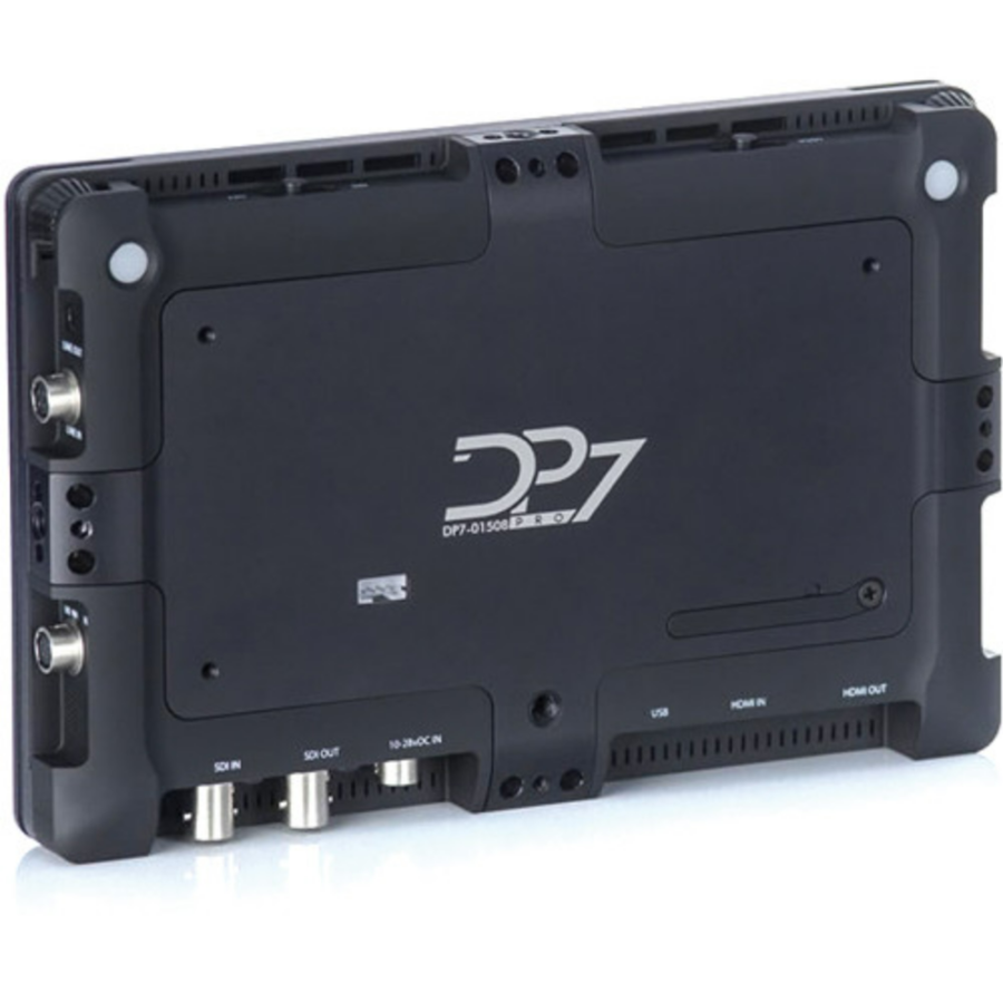The DP7-Pro OLED has a 7.7″ OLED display with a 1280 x 800 HD resolution and 8-bit color depth. The display has a Gorilla Glass screen, which is scratch-resistant and highly fingerprint-resistant. Connections include HD-SDI and HDMI input and output, with the inputs simultaneously active, as well as a Hirose input that supports an optional SmallHD Component/Composite breakout cable. The SDI output can be doubled as an input so you can toggle between two live SDI signals. The input signal can be output via either of the outputs or both at the same time. This model additionally has a discreet SmallHD proprietary X-Port accessory slot on the rear that allows for bulk-free integration with accessories such as the SmallHD Wireless Dock for Paralinx receivers. The monitor is super-tough, made with a reinforced milled aluminum housing capable of withstanding the pressure of a 4×4 truck running over it, yet it weighs only 1.2 lb.