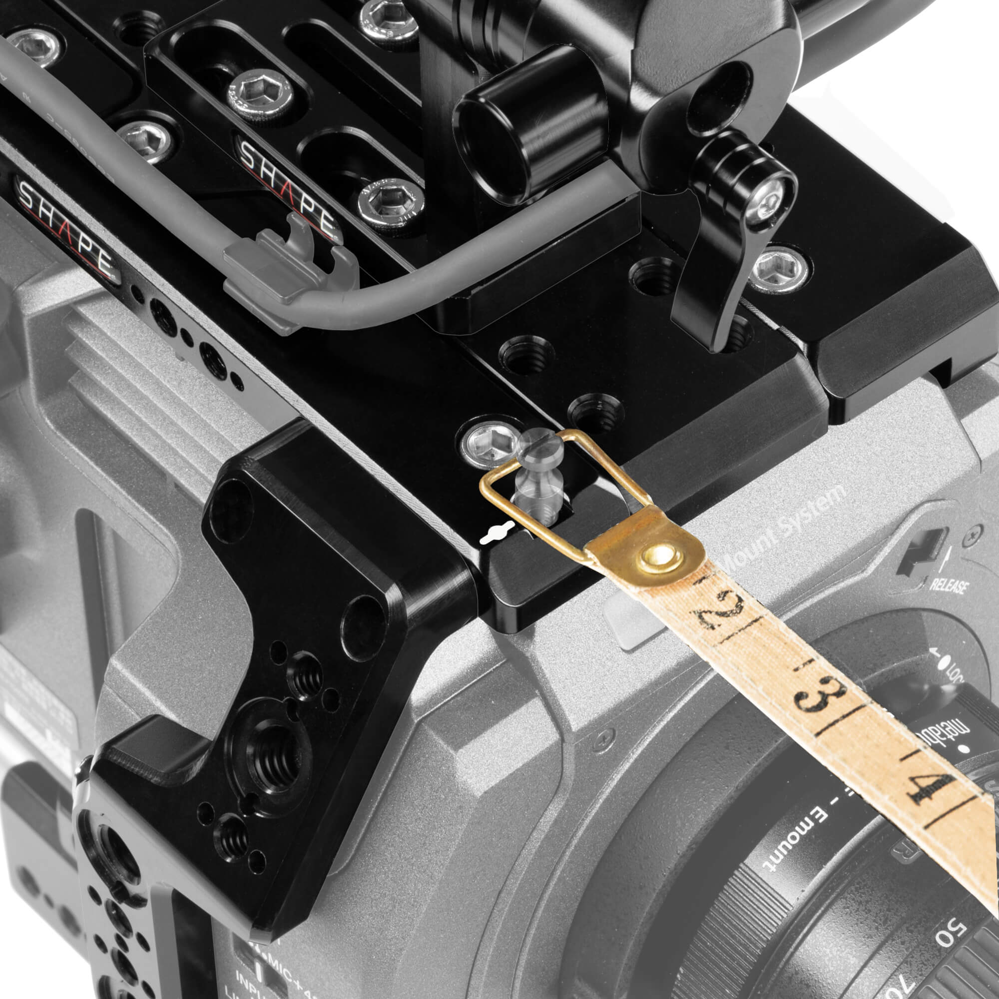 Add accessories and handheld functionality to your Sony PXW-FX9 camera with this rig kit from SHAPE. It includes a baseplate with 15mm rod system, a form fitting side plate with Arri rosette , a top plate, a rear insert plate, a top handle with several threaded holes, and a viewfinder rod clamp with 19mm push-button. The baseplate match the Sony FX9 optical center and can also be tripod-mounted. The rear insert plate attaches to the rear of the camera to support it on the baseplate. The 15mm 12” rods allow you to mount additional accessories._x000D_