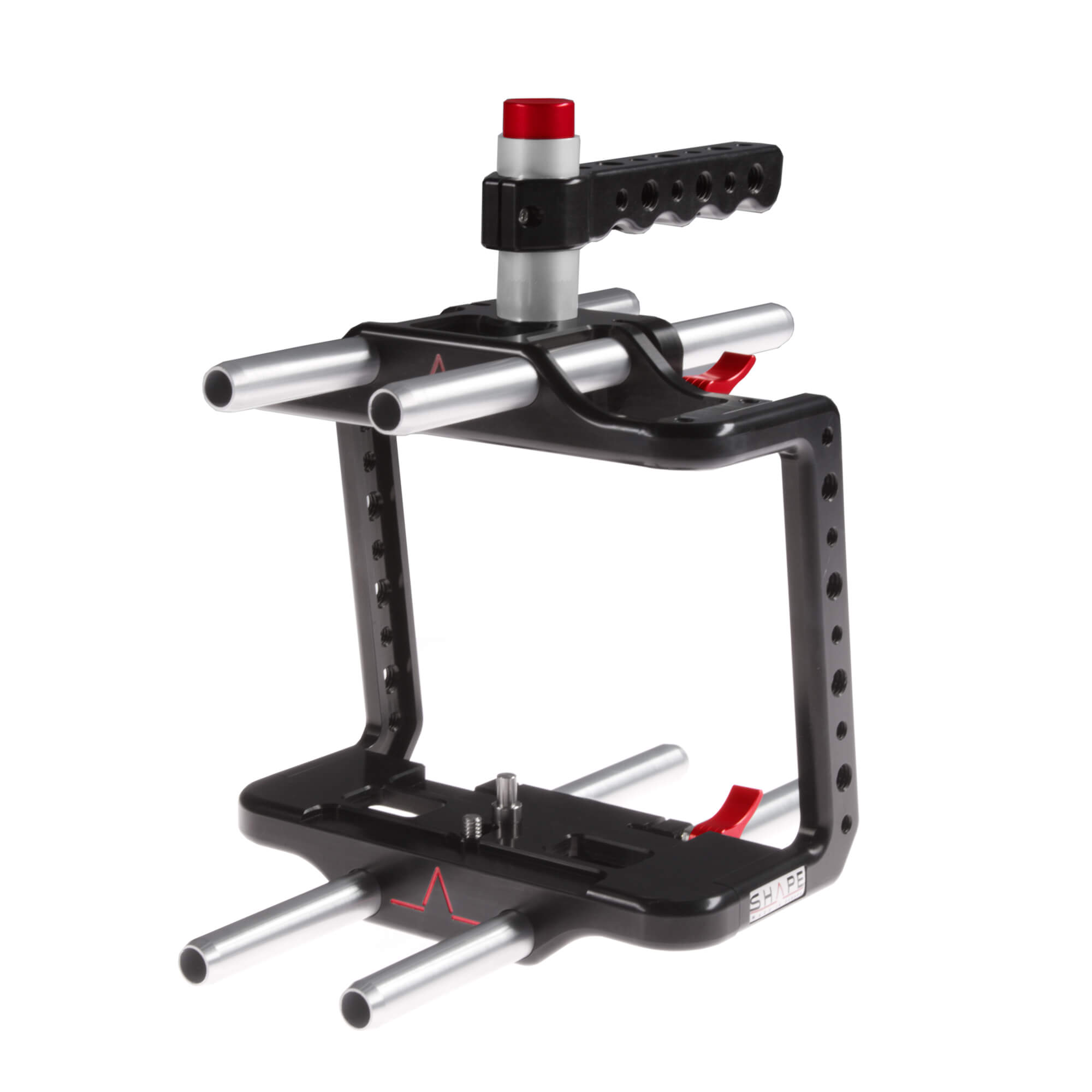 SHAPE is well known for its patented Push-button handle, now used by so many professionals in the industry. The technology was developped to give filmakers quick and easy adjustment. By simply pressing the button, you are allowed a 360-degree rotation to place the handle in the best position for your use. Push, adjust, release, and then its lock.