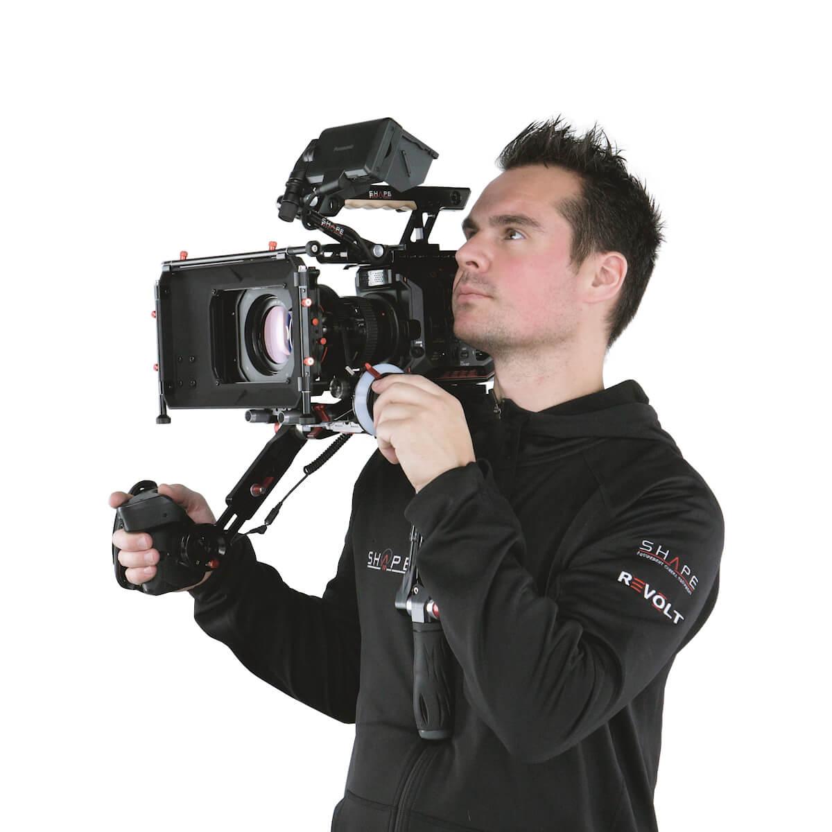 SHAPE is well known for its patented Push-button handle, now used by so many professionals in the industry. The technology was developped to give filmakers quick and easy adjustment. By simply pressing the button, you are allowed a 360-degree rotation to place the handle in the best position for your use. Push, adjust, release, and then its lock. The Push-button system on the Handle articulating joint provides additional articulation near the rosette, while the second push-button articulation joint allows you to rotate and precisely position the rubber handgrips.