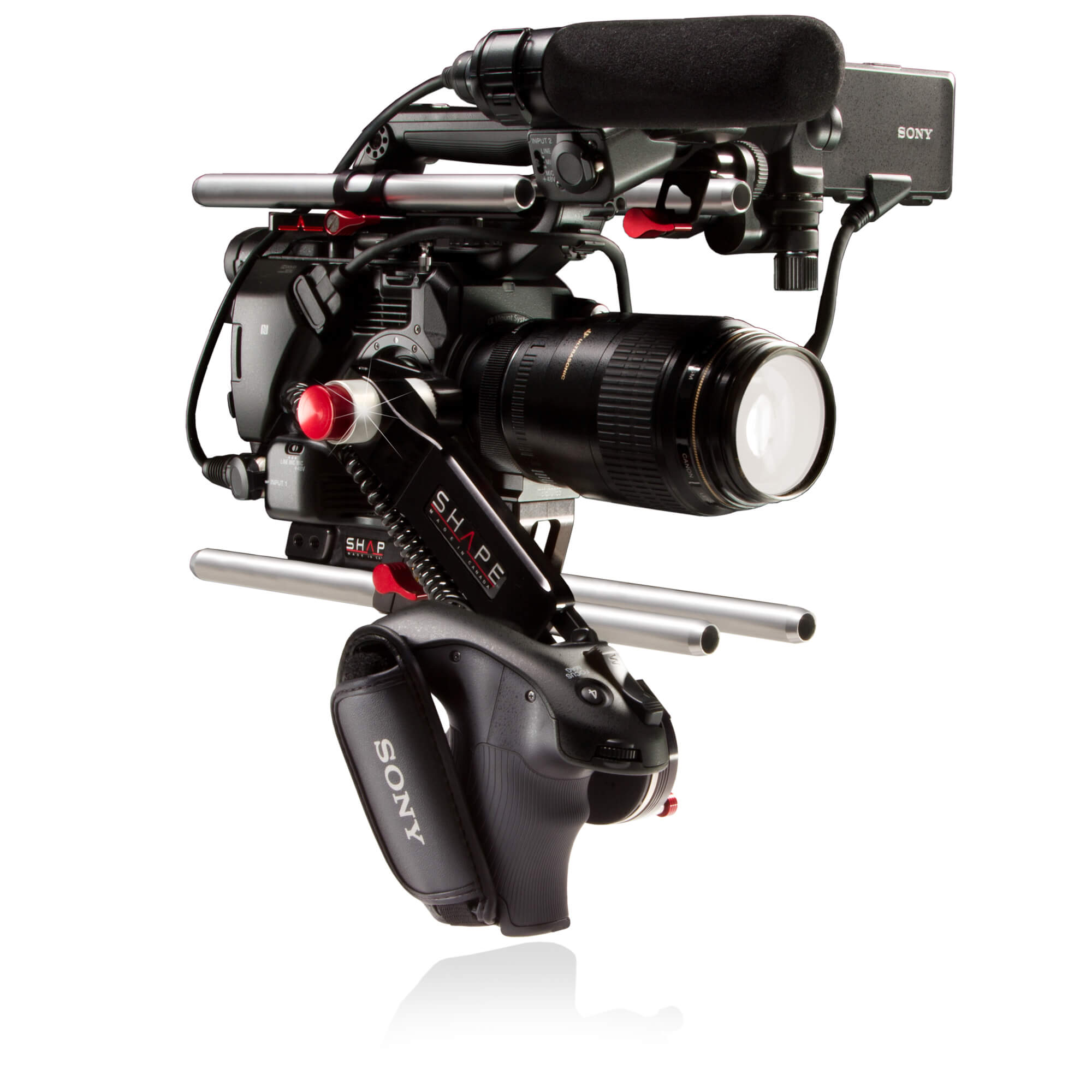 The 2 rod clamps are designed to be mounted on the SHAPE Sony FS5, FS5M2 top plate (FS5TP) for accessory options. A screen mount adapter on the rod allows you to adjust the Sony LCD screen closer or farther away, according to your viewing needs. The distance between the 2 rod clamps is standard 15 mm LW system and the rods are positioned for the optical center of the camera. It’s perfect for drone and gimbal application, and is designed with a lightweight system for mounting any standard 15 mm accessories. The rod clamp can also be rotated 90 degrees for other rigging options.