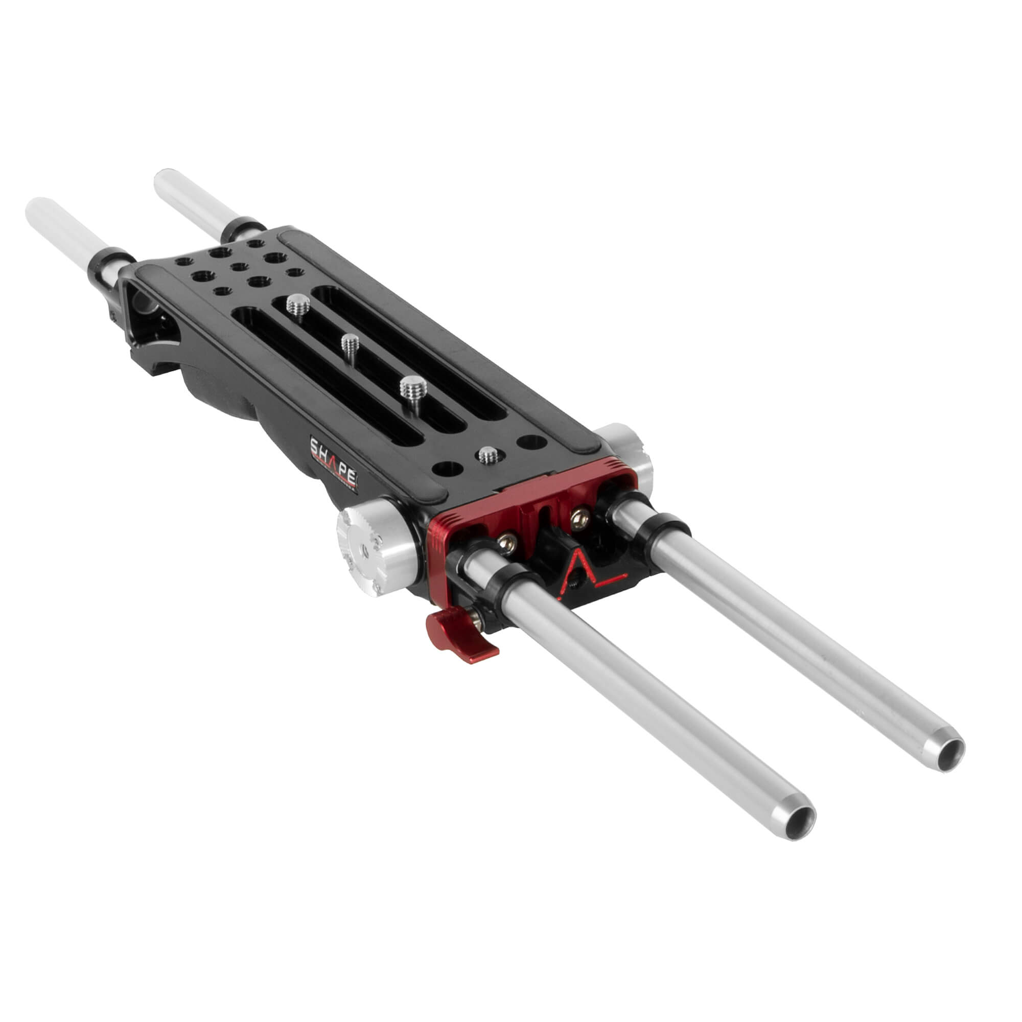 The SHAPE  V-Lock Quick Release Baseplate is a long format baseplate and it can be used shoulder mounted, tripod mounted, and attached to V-lock tripod adapters. The baseplate includes a removable shoulder pad and features rosette adapters for ARRI standard handles. It has 1/4″-20 and 3/8″-16 tripod mount threads and a V-lock delta adapter for attaching SHAPE VCT Tripod Plate (VCTSH) or any VCT-14 tripod plate.