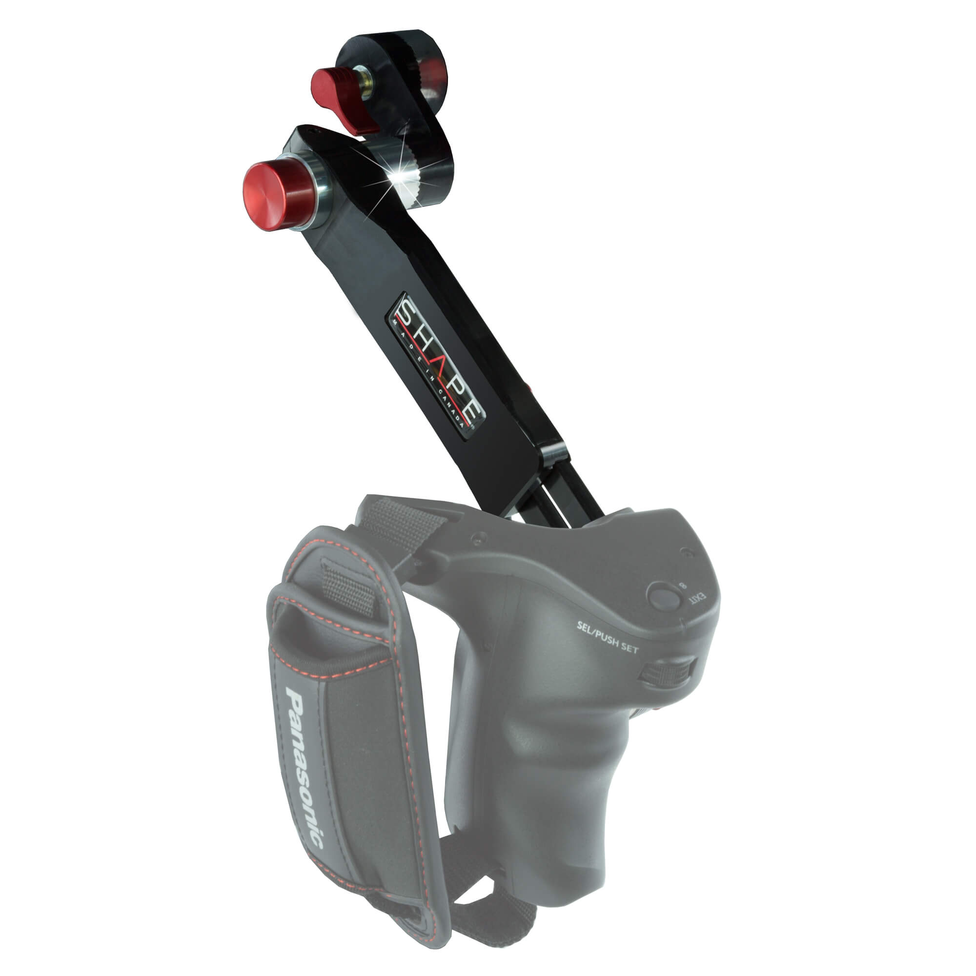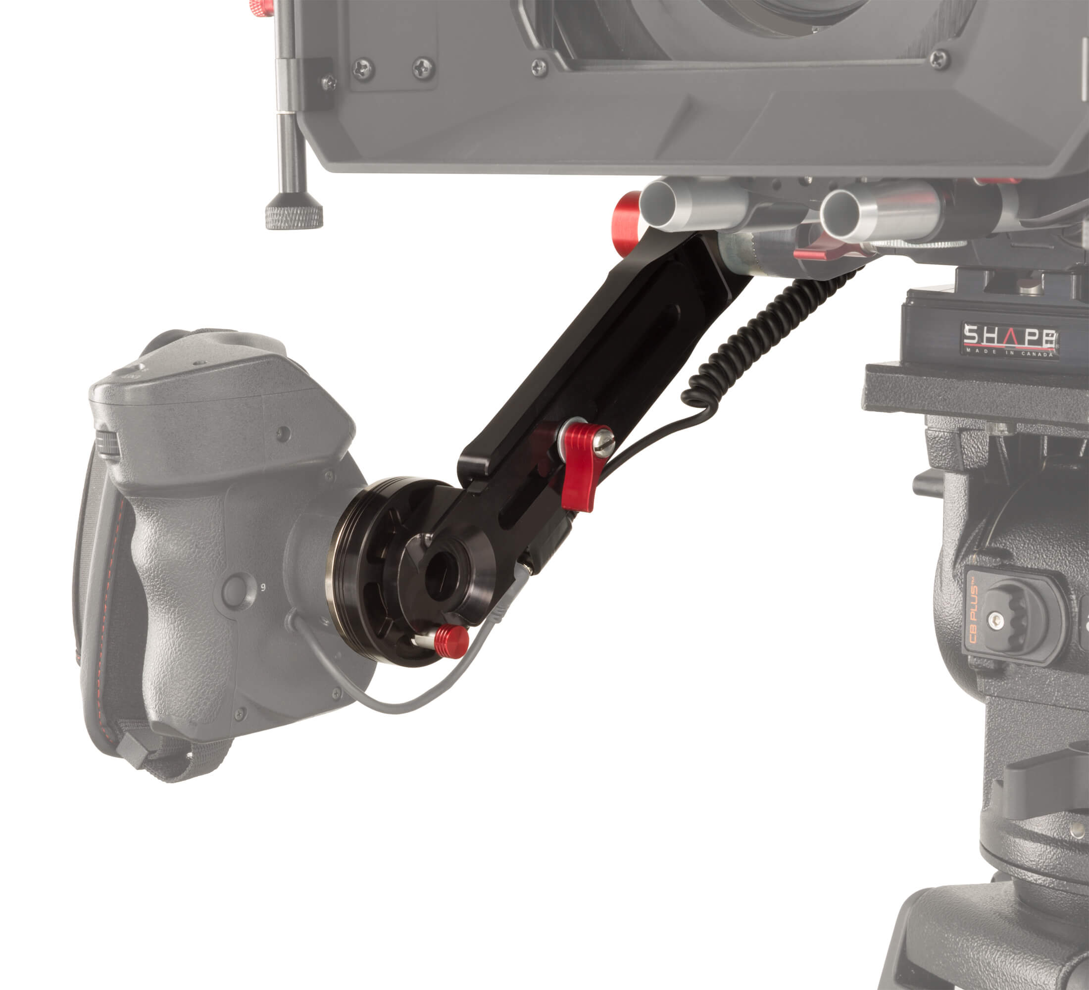 The Panasonic AU-EVA1 remote extension handle from SHAPE offers an adjustable arm extension for the side hand grip provided with the Panasonic AU-EVA1. It can be fixed on the Baseplate only with standard ARRI rosettes. It features SHAPE’s patented Push-button Technology for easy angle adjustment and 360-degree rotation. The extendable arm is equipped with a ratchet key to easily adjust the length of the arm. SHAPE is well known for its patented Push-button handle, now used by so many professionals in the industry. The technology was developed to give filmmakers quick and easy adjustment. By simply pressing the button, you are allowed a 360-degree rotation to place the remote extension handle in the best position for your use. Push, adjust, release, and then its lock.