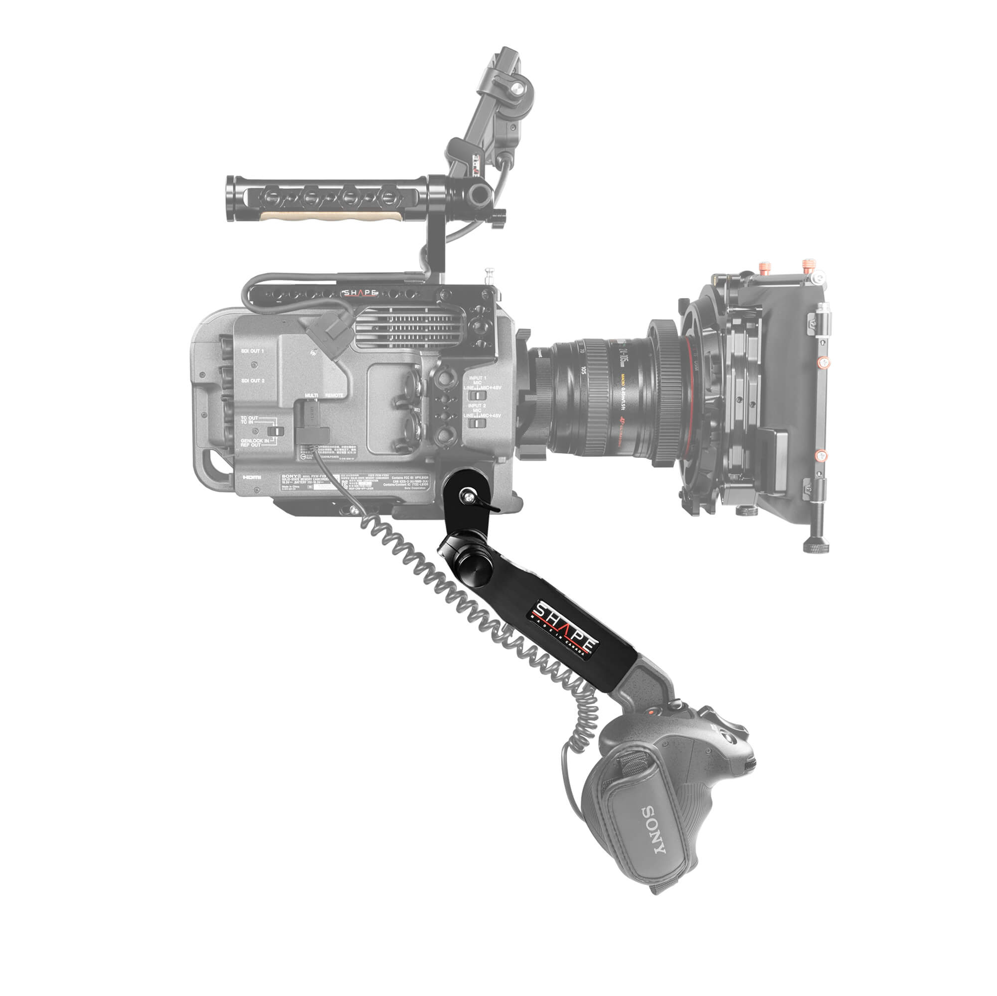 The Sony FX9 remote extension handle from SHAPE offers an adjustable arm extension (2 inches) for the side hand grip provided with the Sony FX9. The extendable arm is equipped with a ratchet key to easily adjust the length of the arm. It is designed with Arri rosettes to mount on the camera or baseplate with standard ARRI rosettes. It also features SHAPE’s patented Push-Button technology for easy angle adjustment and 360-degree rotation. SHAPE is well known for its patented Push-button system, now used by so many professionals in the industry. The technology was developped to give filmmakers quick and easy adjustment. By simply pressing the button, you are allowed a 360-degree rotation to place the remote extension handle in the best position for your use. Push, adjust, release, and then its lock.