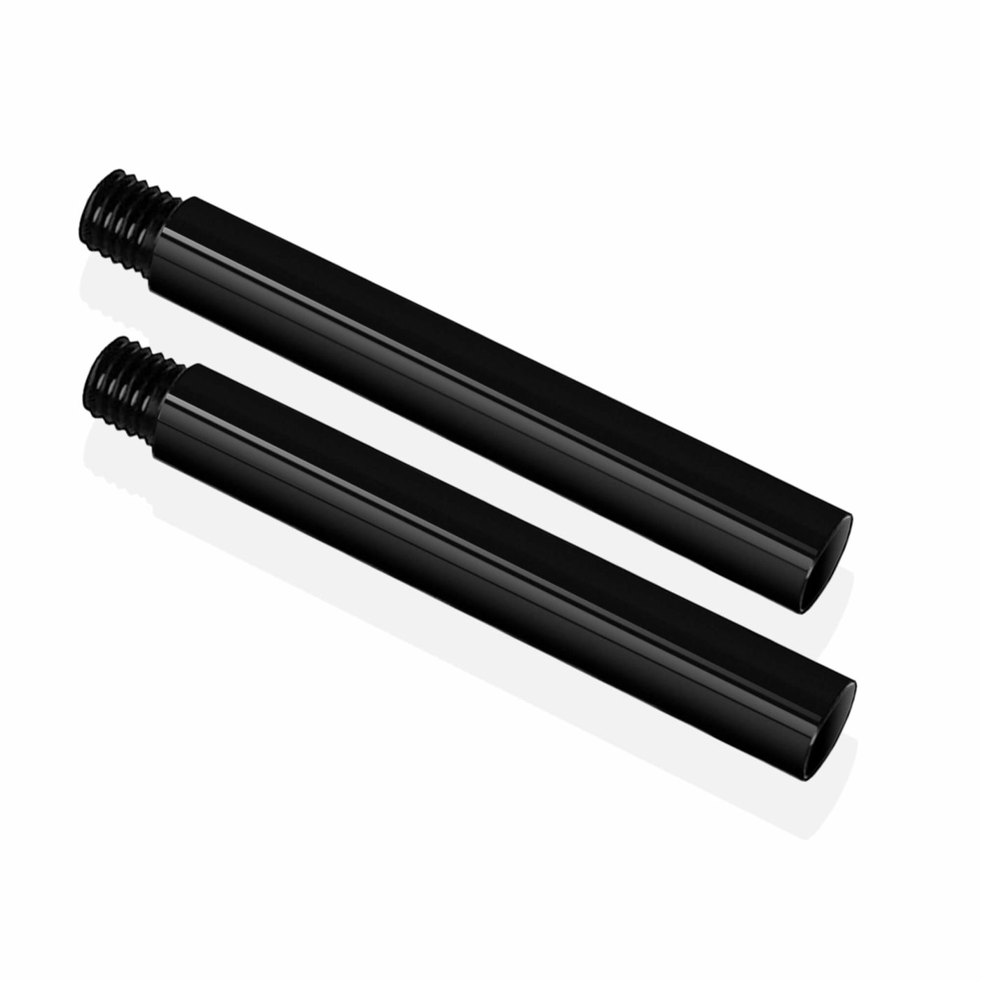 This pair of 4″ black 15 mm Extensions Rods features one male end and one female end, each with 1/2″-13 threading. The rods are composed of lightweight anodized aluminum for strength and durability.