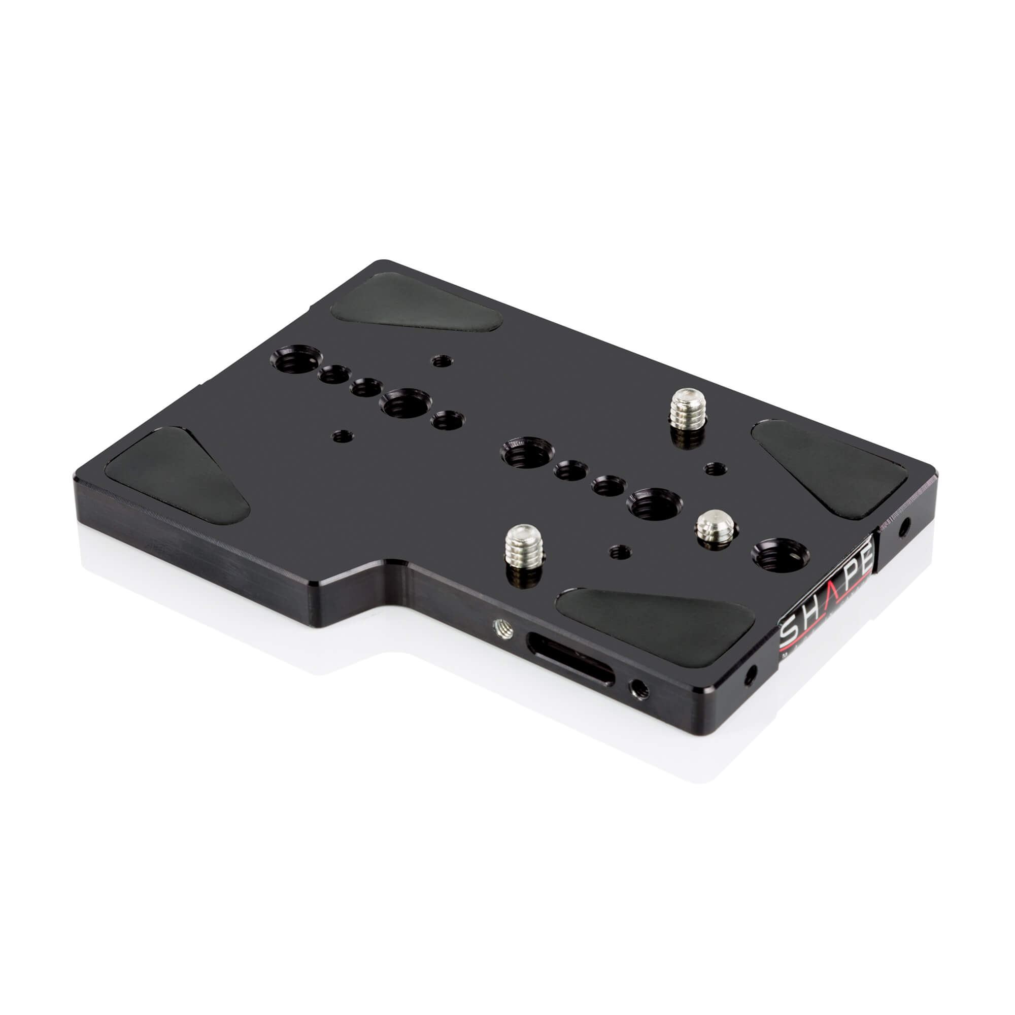 The SHAPE Baseplate is designed for use with the Canon C200 camera. The baseplate features three attachment points for securing your camera and tripod plate attachment via three 1/4″-20 mounting holes. Unscrewing the bottom section of the baseplate with an Allen key (included) reveals an adapter plate with several 1/4″-20 and 3/8″-16 threaded holes, suitable for optimizing your C200 camera balance on a tripod, gimbal, or drone.