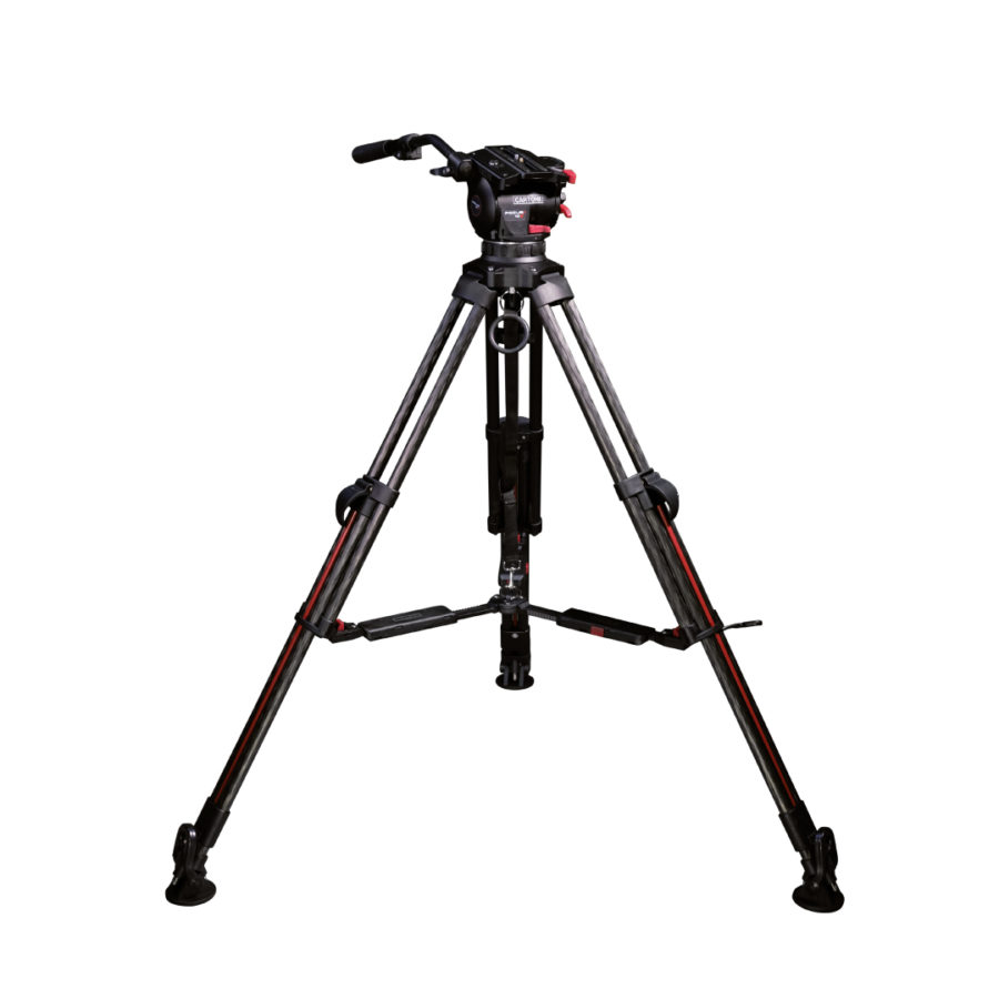 Focus 10 Fluid Head assembled with 1 handle, 2 stages carbon fiber ENG Tripod Smart Stop, mid-level Spreader and rubber feet