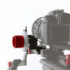 The focus mechanism can be used on either the left or the right side of the lens, depending on the direction you place the Clic onto the rods in. And the focus disk itself can be used either in front of the focus mechanism or behind it, so to accommodate a wider variety of lens lengths. To move the disk to the rear, you would first just unscrew two screws from the gearbox. Once the screws are off, the focus disk can just be flipped over for use with longer lens constructions. The white mark disk at the right of the red knob is made of highly resistant Delrin thermoplastic. It can be written on with non-permanent markers to mark up focus measurements for various predetermined shots, and it is interchangeable and thereby many predetermined measurements can be kept ready at your side. Additionally, a slide-adjustable marker made of aluminum is included to be attached beside the mark disk and to be moved and tightened into positions along the disk.