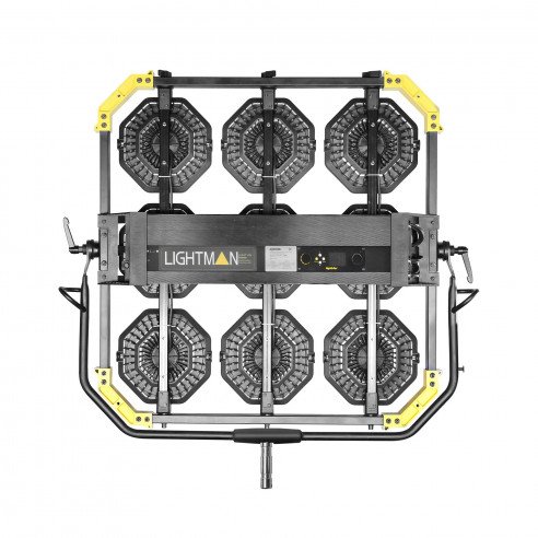 It’s robust, versatile and the perfect match for your set. The Lightstar LUXED-P9 comes with a yoke-mount for easy mounting. The slim structure of the LUXED-9 is perfect for lighting stands in small areas and studios. The LUXED-P9 gives you full control with the tools of your choice. You can use DMX, lumenradio or free app to change your settings and adjust each one of the 9 spots seperately. Expect astonishing 1440W RGBWW light, that will change the way you work on set. The high-quality frame offers you endless possibilities to mount your LUXED-P9 whereever you need it.