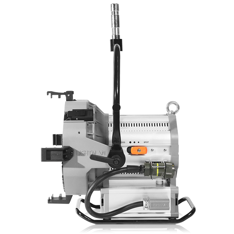 Our Lightman 1200/1800W HMI an open-face fixture with a reflector design. It has a maximum output of 1800W,