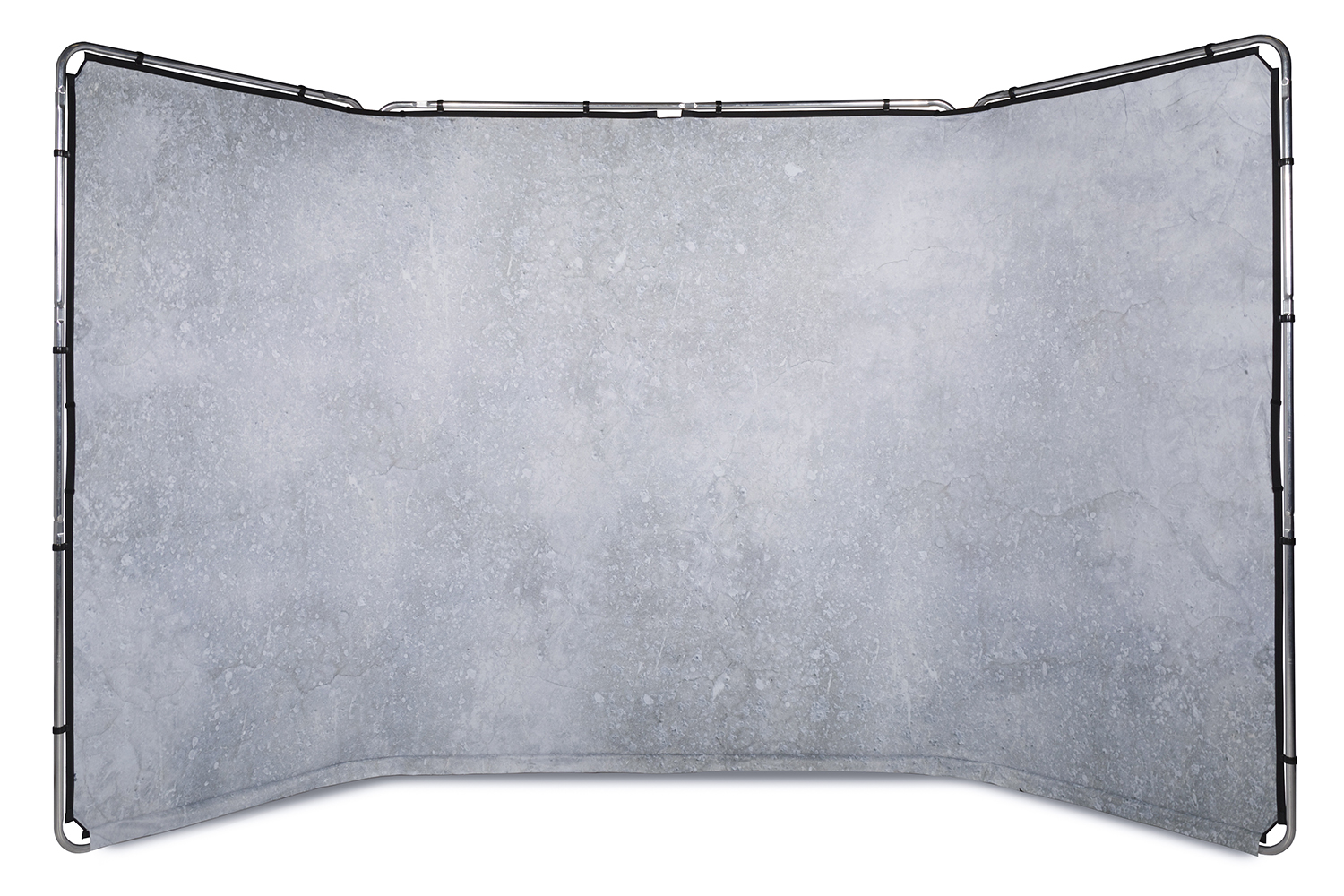 Panoramic photography Background self-supporting framework and Granite cover. This kit also comes complete with the Panoramic Background fabric bag. The Limestone cover offers a subtle range of mid to light greys giving the effect of a Limestone surface. Strong, easy to attach clips allow the fabric cover to be quickly attached and removed from the framework whilst holding the cover tight enough to remove any creases.
