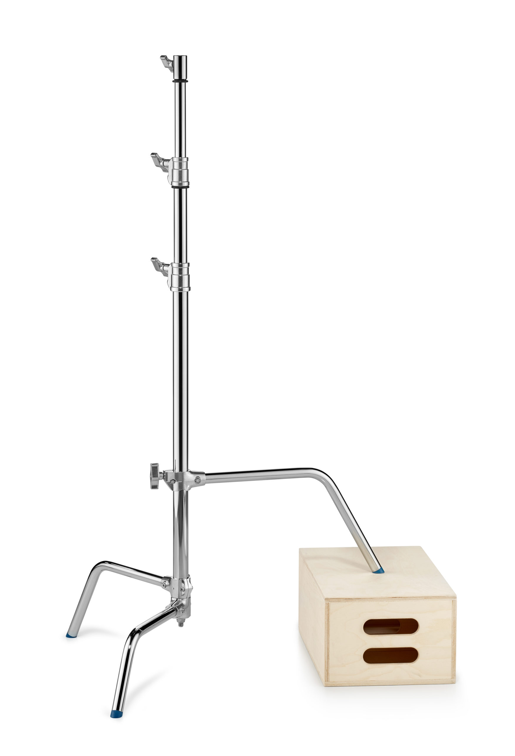 30″ Lazy-Leg/Levelling Leg C-stand in silver chrome steel.