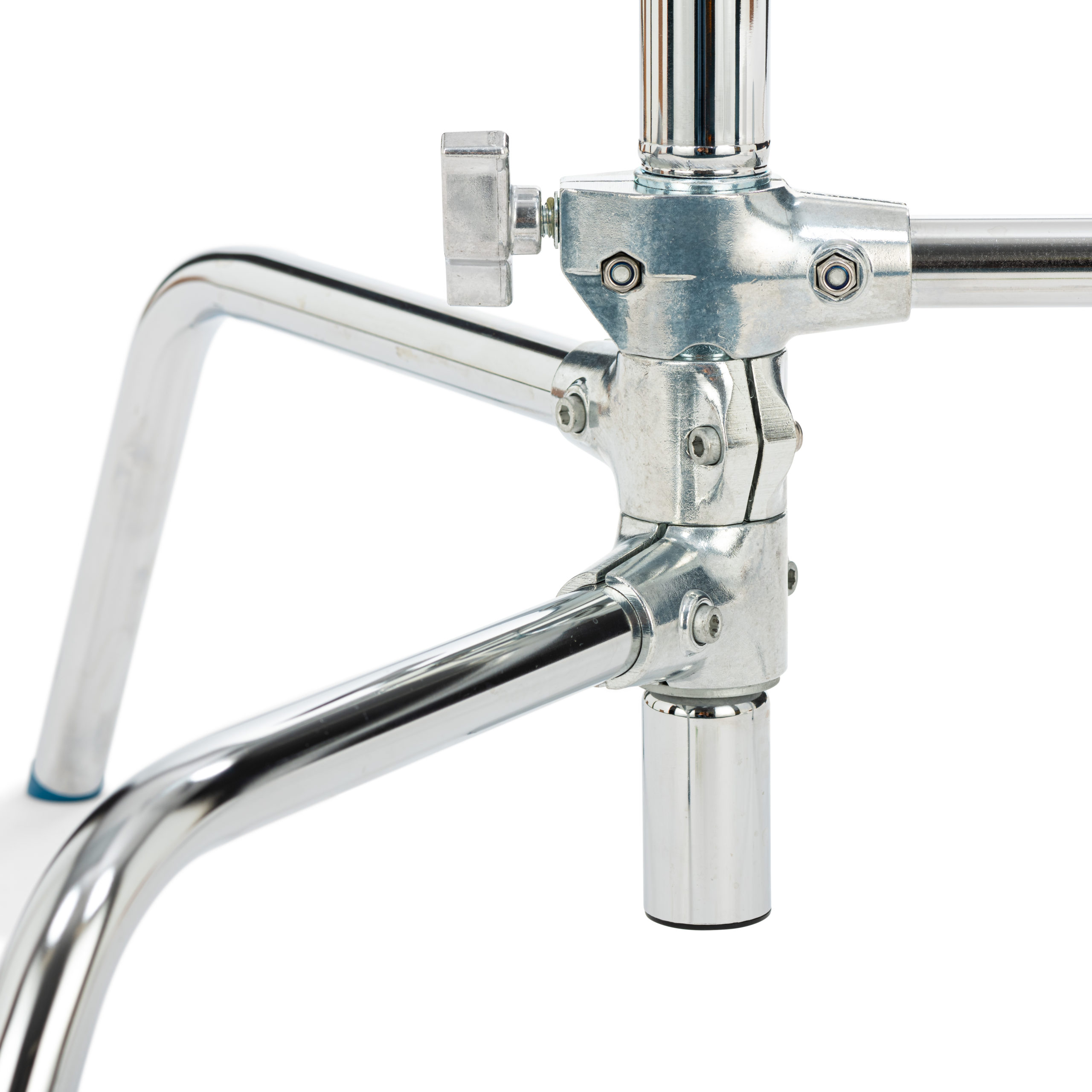 20″ short Turtle Base C-Stand in silver chrome steel