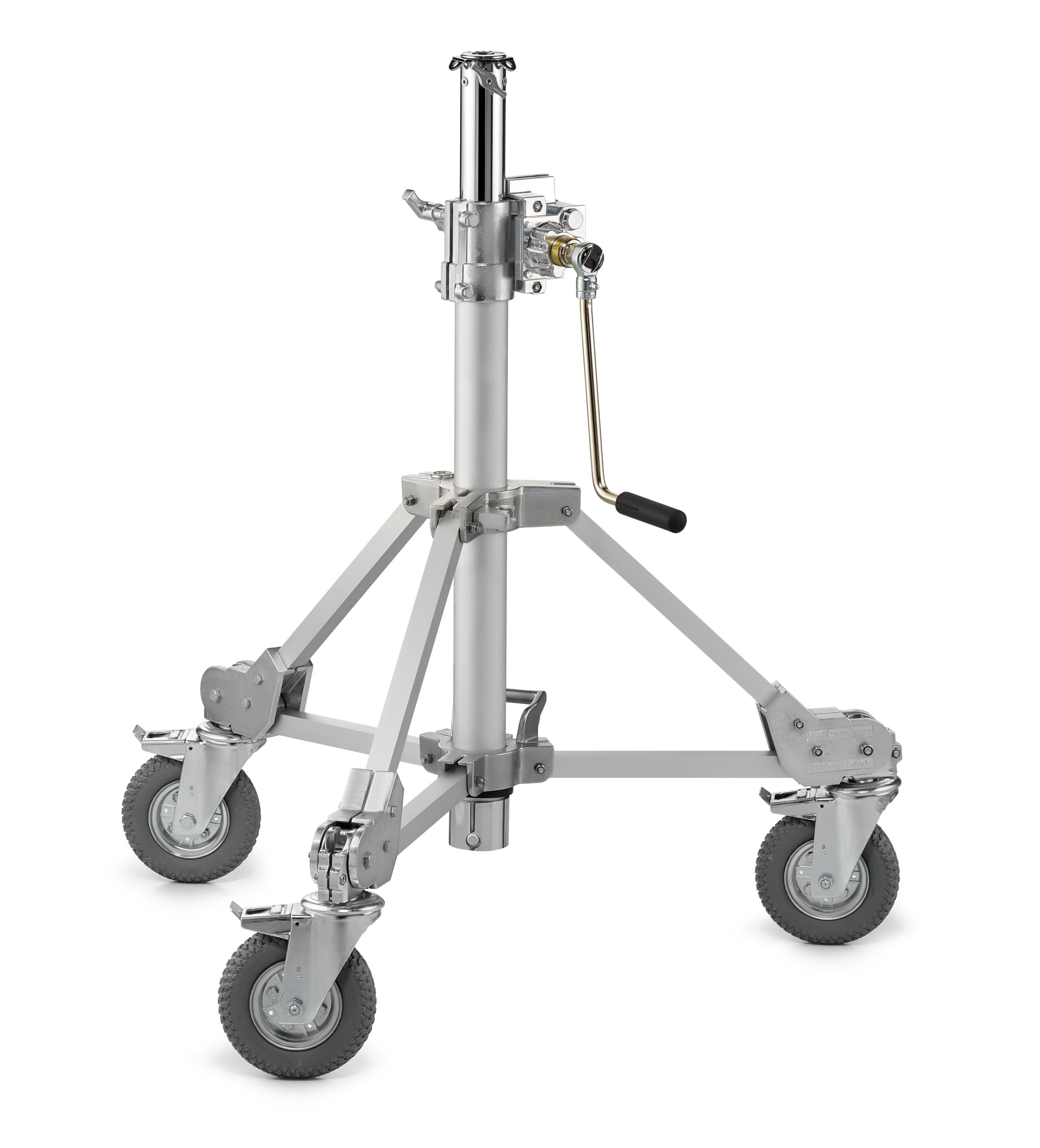 The B7018 Strato Safe Stand is the smallest stand in terms of height in the Avenger Strato Safe Family! The Aluminium legs and chrome steel column are capable of handling loads up to 100 kg/220 lbs at a max height of 175 cm/68.9 inches. Equipped with foam-filled braked multi-directional wheels the B7018 is capable of easily moving the biggest lights into position on different types of terrain. The heavy-duty gearbox uses a removable ratchet handle that easily raises and lowers the most demanding loads. When the ratchet handle is not in use you can store it on the side of the top casting which is situated and attached to the lower column. Recommended Accessories: 425B, D650, E200, G300, C626, 087WBK, C590, F100, C461-1, C4461-1