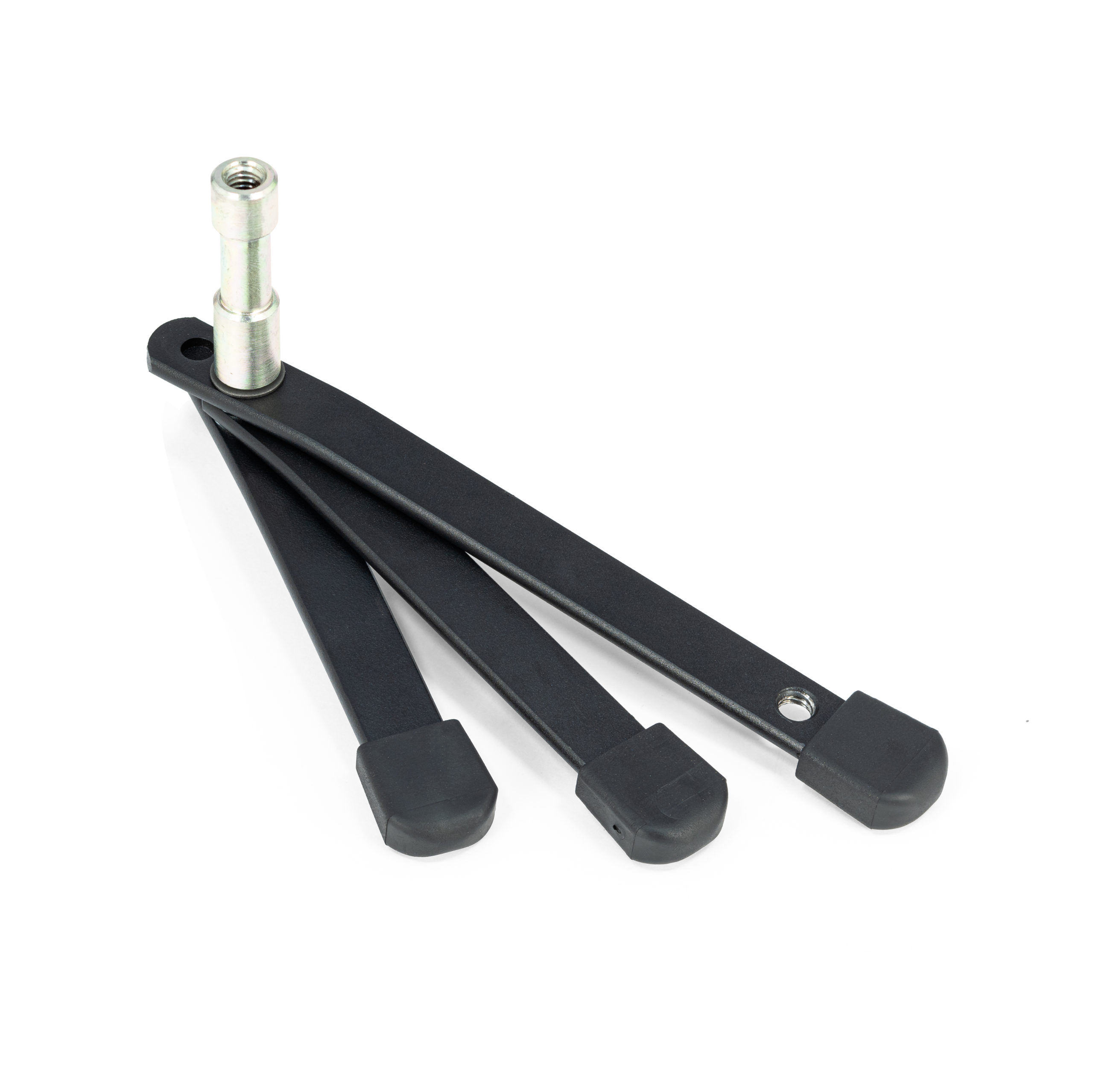 The hole at the end of each leg enables the user to nail the stand to the floor, hang it on a wall or fix it to the ceiling. Same as 003MF but with 16mm male attachment (Type 22).