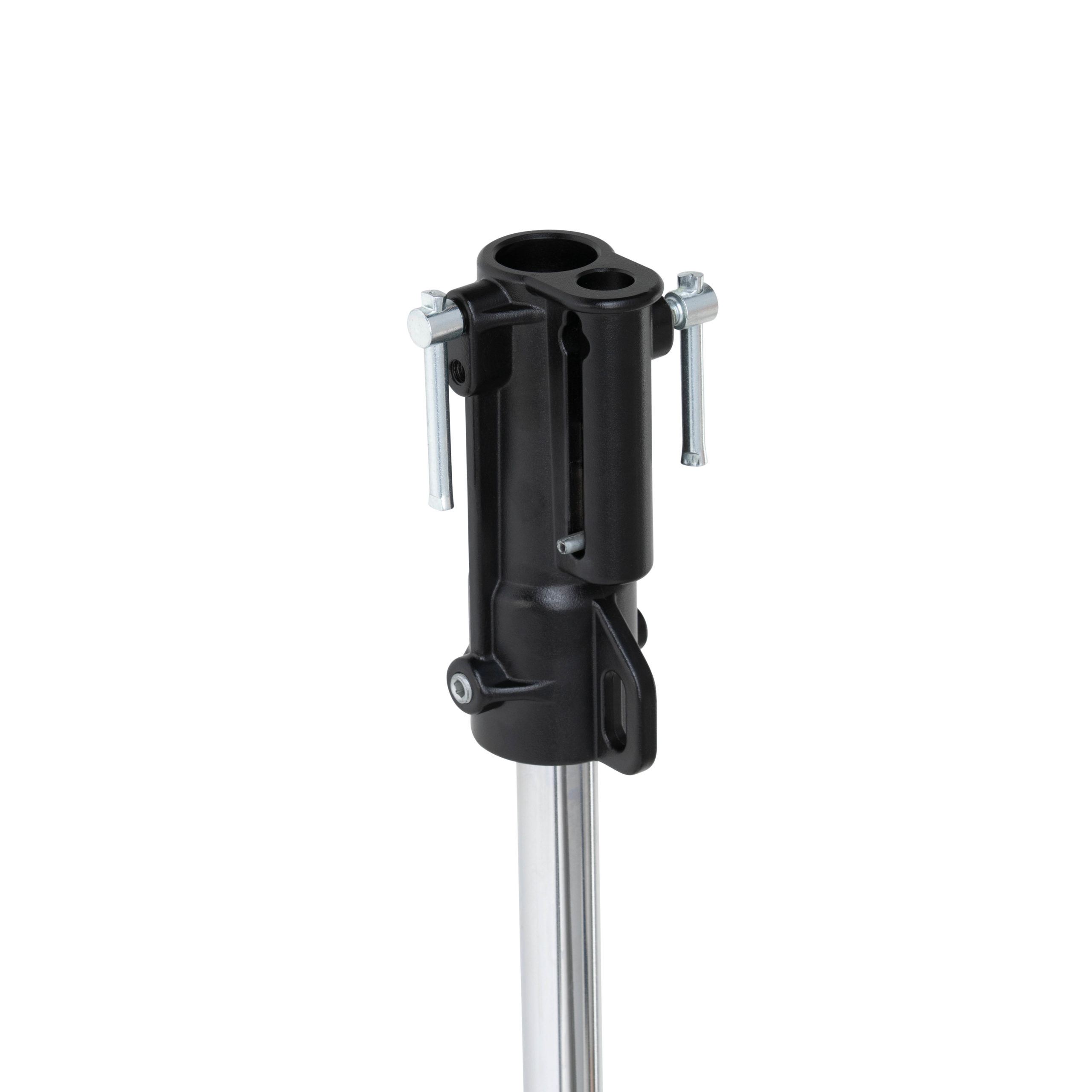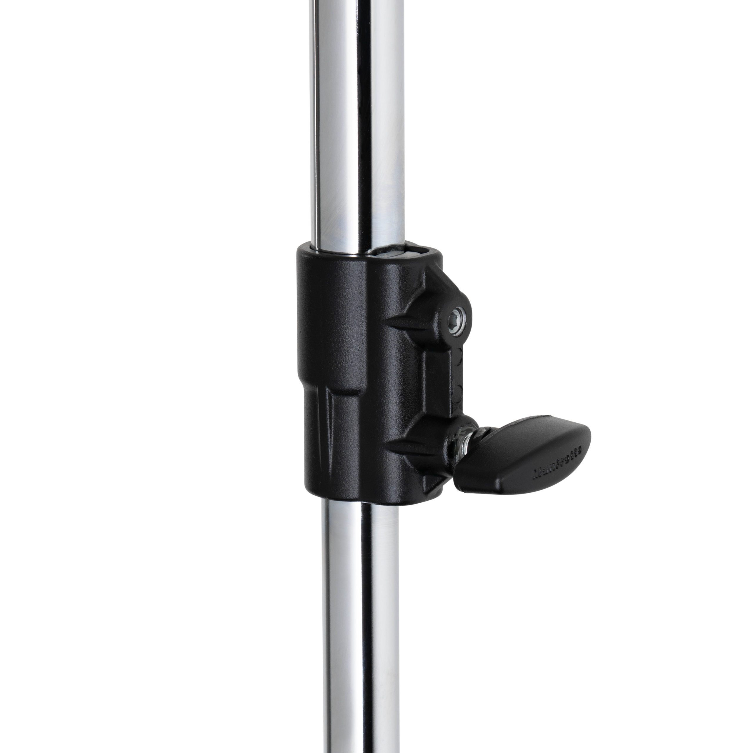 This steel stand extension has a chrome finish