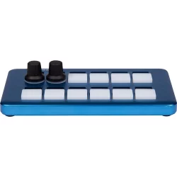 The black Quick Pad control surface provides fully customizable functions for an extensive selection of SKAARHOJ Device Cores. This ultracompact unit offers four-way buttons and two backlit encoders with RGB coloring and crisp OLED displays. Create your own icons or use the custom SKAARHOJ symbols to personalize the keys.
