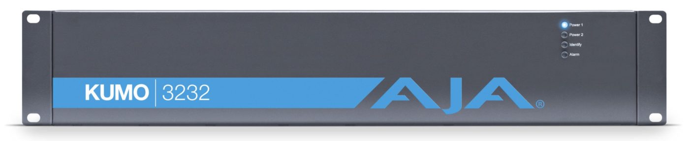 KUMO 3232 offers increased capacity for larger configurations while maintaining a mere 2RU profile. Built to the same quality standards as all AJA KUMO products, KUMO 3232 is the ideal choice for any situation where a balance of size and capacity are critical such as mid-sized post facilities and mobile trucks.