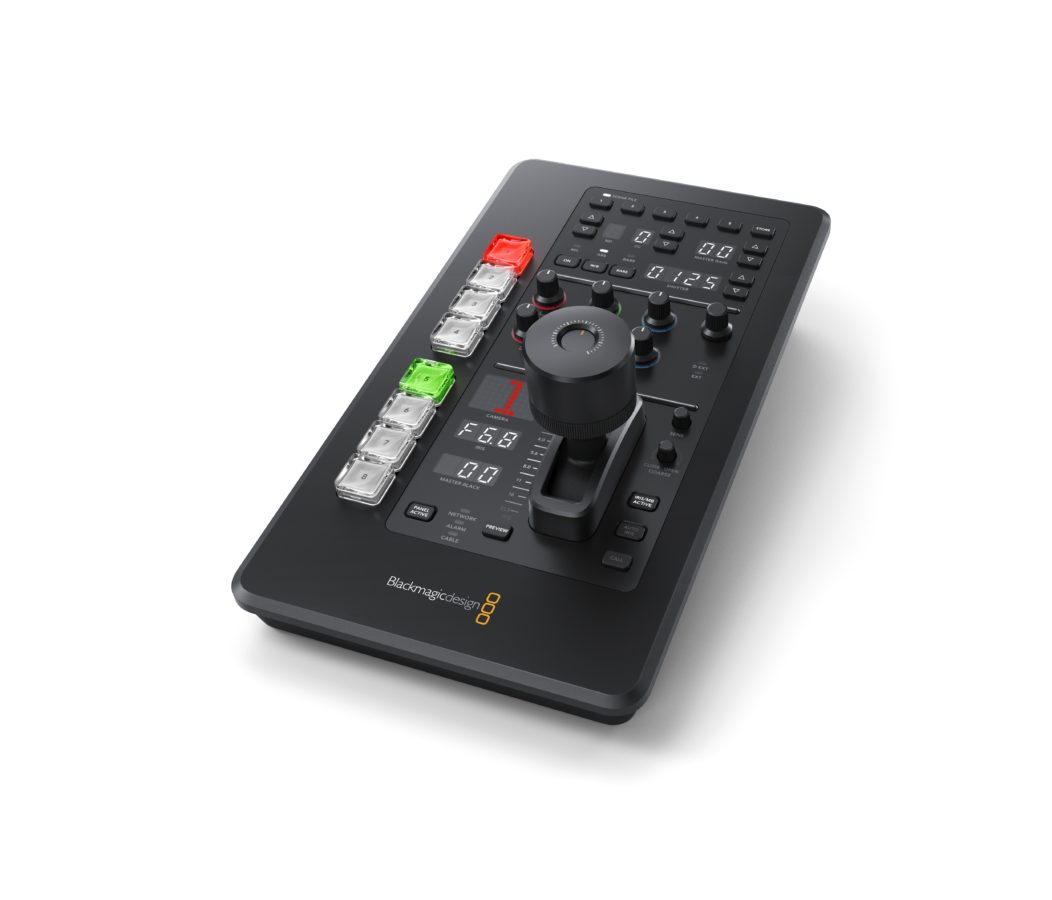 ATEM Micro Camera Panel is a portable camera panel with high end broadcast CCU controls. Control iris, pedestal, shutter, white balance, master gain, RGB balance and more for up to 8 cameras from a single panel. Connects to ATEM Software Control via Bluetooth or USB‑C.