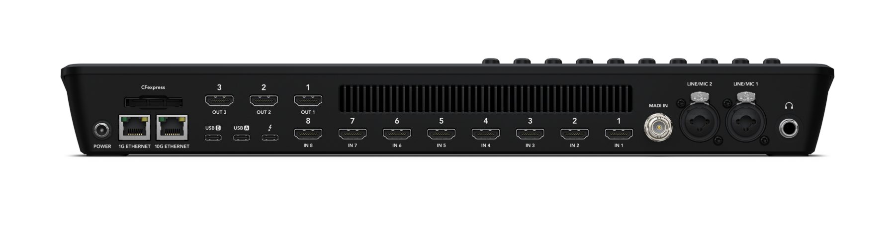 ATEM Mini Extreme ISO G2 is a powerful yet compact live switcher for building a high-end broadcast studio. Get an expanded professional style control panel with built in streaming, 8 standards converted HDMI inputs, 3 independent HDMI outputs, built in streaming engine, multi-view, CFexpress and Thunderbolt for record/playback. There is also 10G Ethernet for fast network storage access, XLR audio inputs, USB webcam, DVE, chroma key, media player and ISO recording of all 8 video inputs.